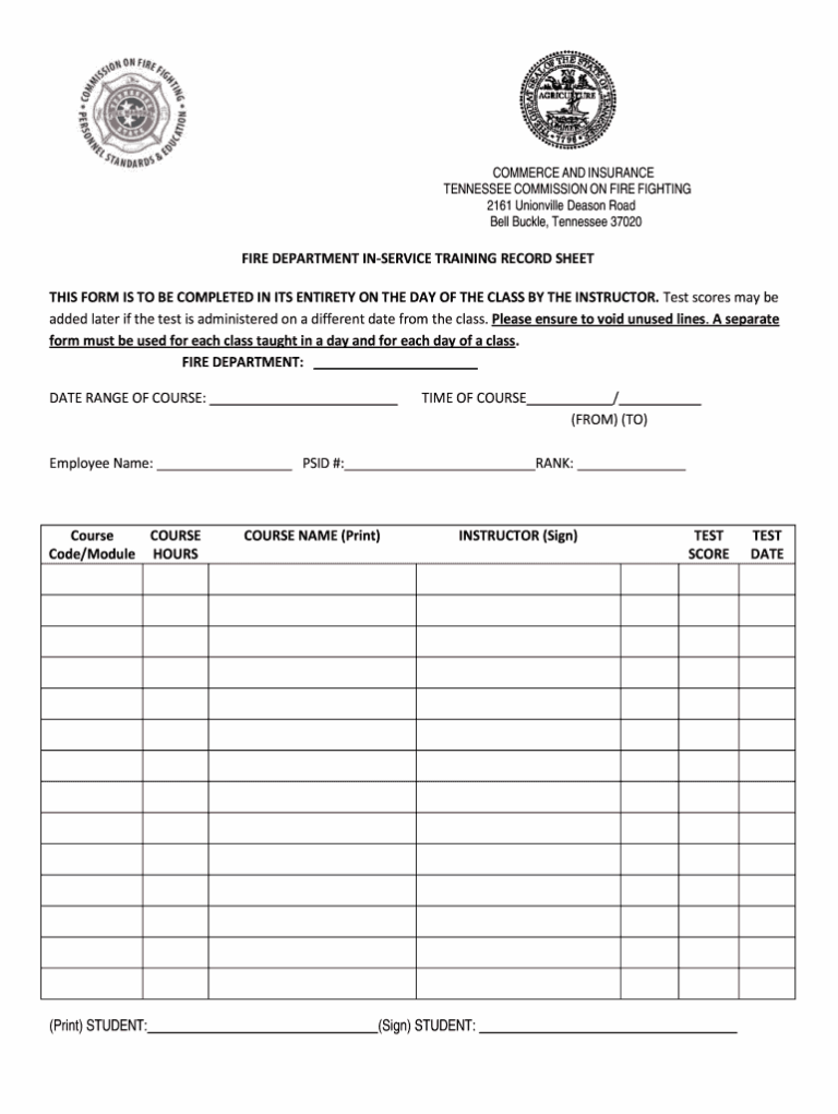 Fire Department Training Report Template