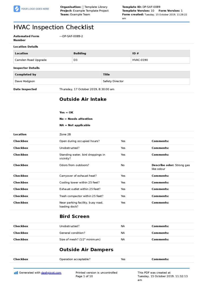 Air Conditioning Inspection Report Template