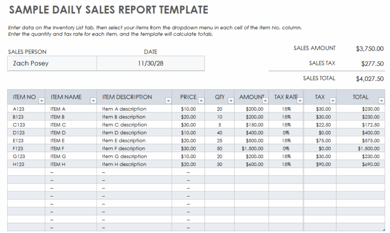 Small Business Daily Sales Report Template