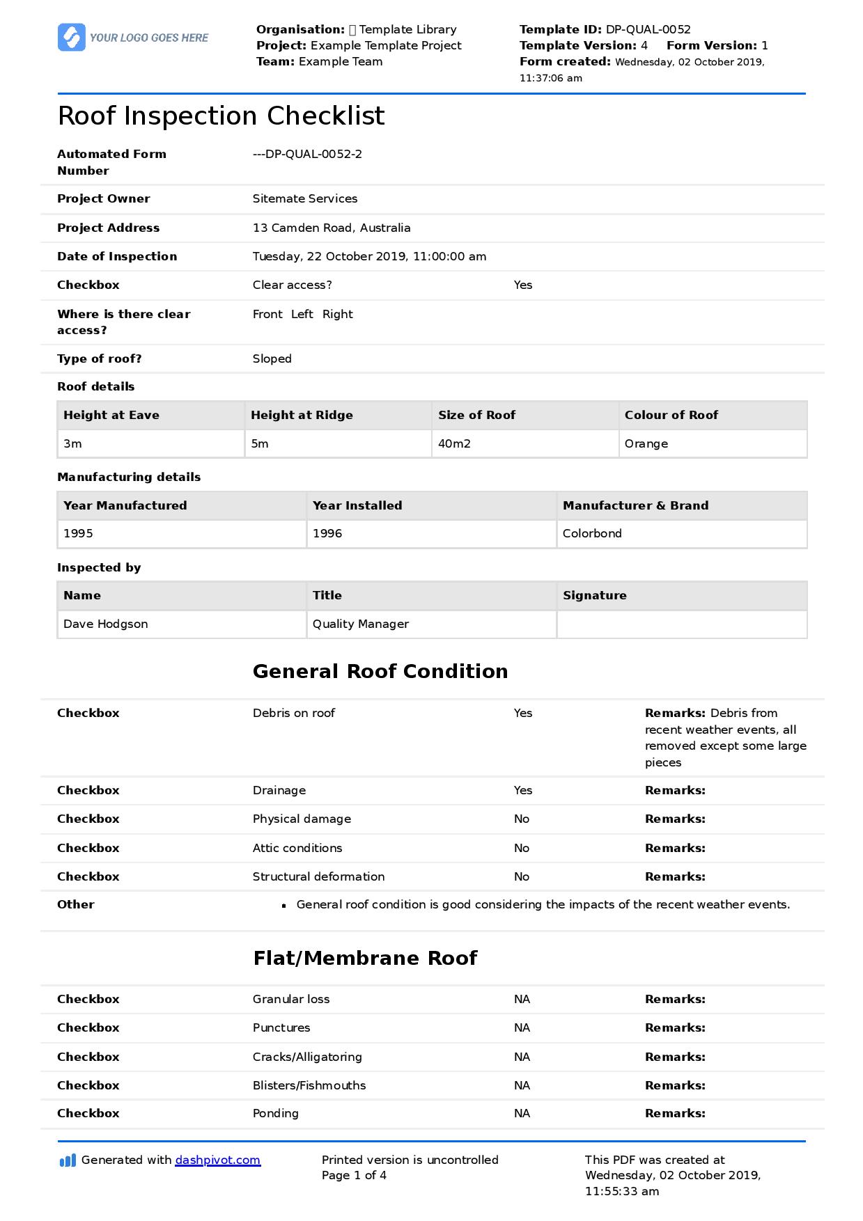 Free Roof Inspection Report Template