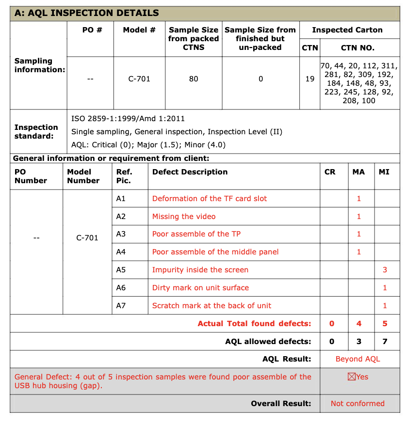 A good report will also categorize any identified defects, typically into critical, major, and minor. This helps in understanding the severity of the issues found. The report should also clearly state the Acceptance Quality Limit (AQL) used for sampling and the outcome of that sampling.
